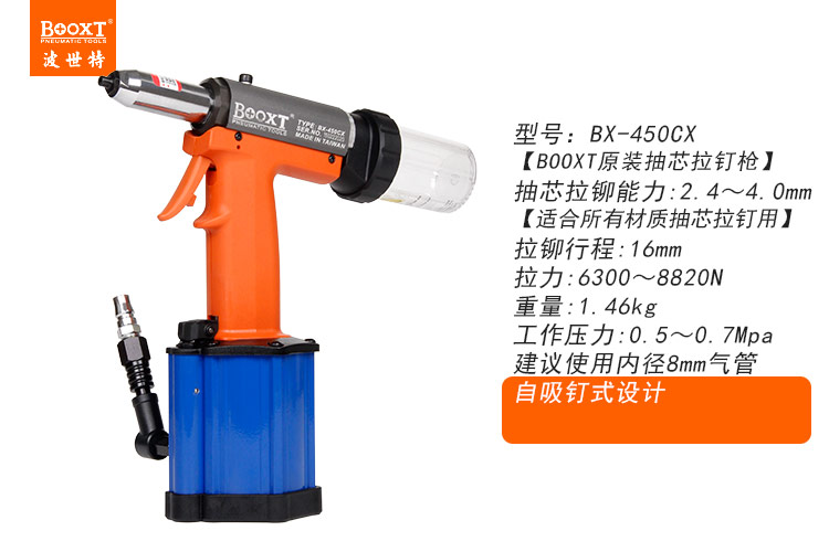 東莞市強(qiáng)勁五金工具有限公司提供臺(tái)灣BOOXT波世特品牌氣動(dòng)工具,自吸釘氣動(dòng)拉鉚槍BX-450CX廠家直銷(xiāo),首件享特價(jià)。咨詢(xún)熱線(xiàn):4008301980