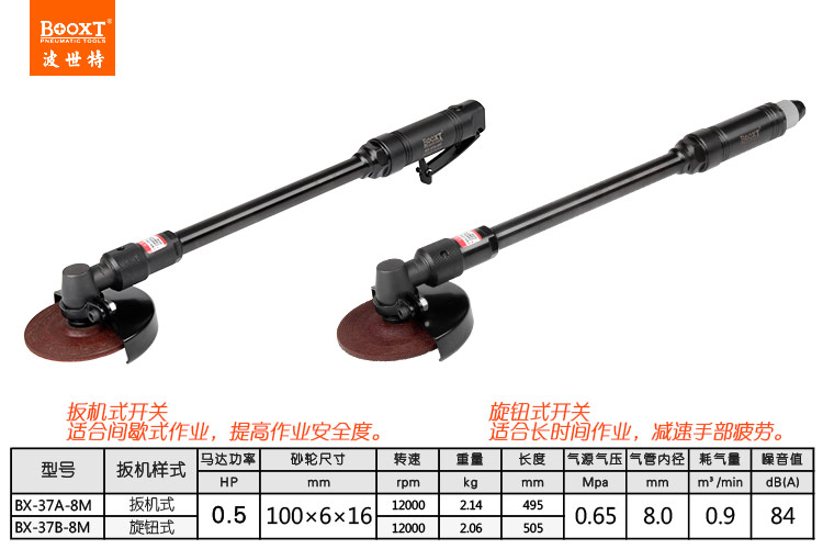 東莞市強(qiáng)勁五金工具有限公司提供臺灣BOOXT波世特品牌氣動工具,加長氣動打磨機(jī)BX-37A-8M廠家直銷,首件享特價。咨詢熱線:4008301980