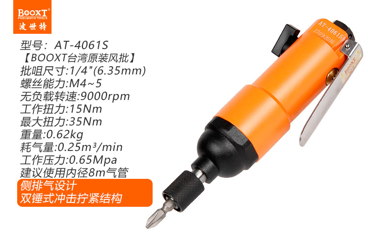 東莞市強(qiáng)勁五金工具有限公司提供臺(tái)灣BOOXT波世特品牌氣動(dòng)工具,氣動(dòng)螺絲刀AT-4061S廠家直銷,首件享特價(jià)。咨詢熱線:4008301980
