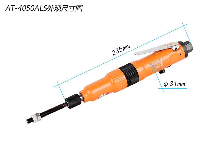 • 產(chǎn)品參數(shù): 螺絲規(guī)格:M3-8 夾頭尺寸:1/4" 空載轉(zhuǎn)速:1700rpm 最大扭力:3Nm 全 長(zhǎng):235mm 重 量:0.61kg 耗 氣 量:5cfm