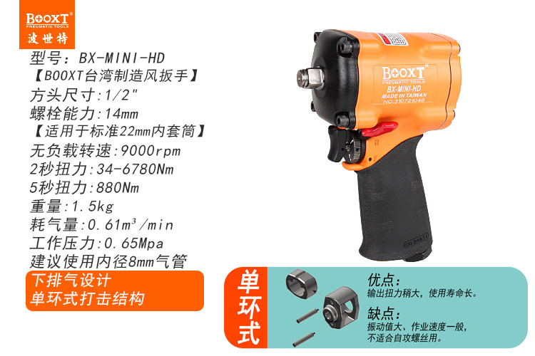 5.單環(huán)設(shè)計(jì),扭力大,使用壽命長,長度更短適合狹窄空間作業(yè)。