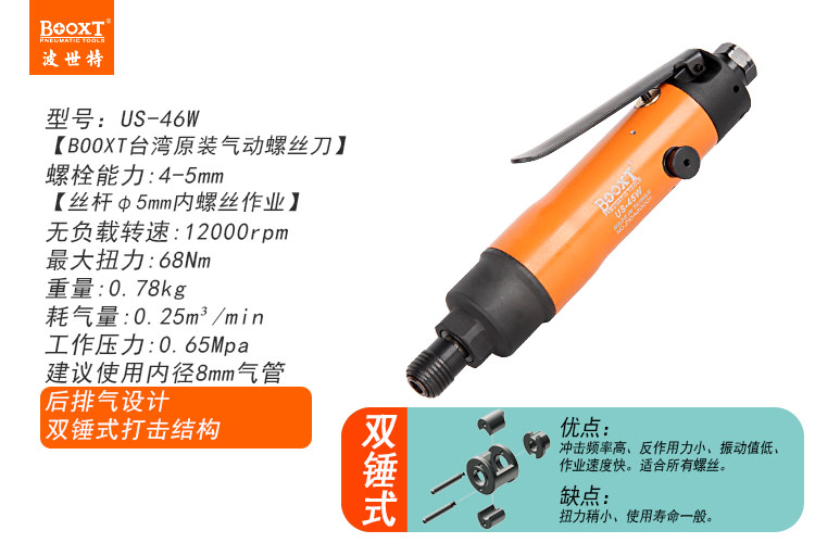 東莞市強(qiáng)勁五金工具有限公司提供臺灣BOOXT波世特品牌氣動工具,氣動螺絲刀US-46W廠家直銷,首件享特價(jià)。咨詢熱線:4008301980