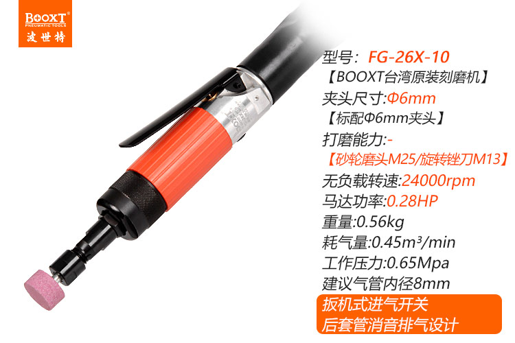東莞市強勁五金工具有限公司提供臺灣BOOXT波世特品牌氣動工具,帶消音刻磨機FG-26X-10廠家直銷,首件享特價。咨詢熱線:4008301980