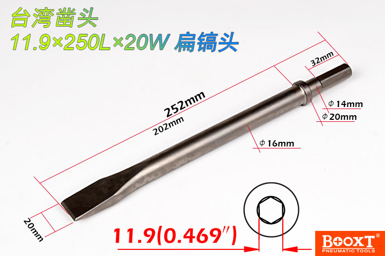 鎬尖尺寸:H11.9*250L*20W   【標(biāo)配/扁鎬頭】