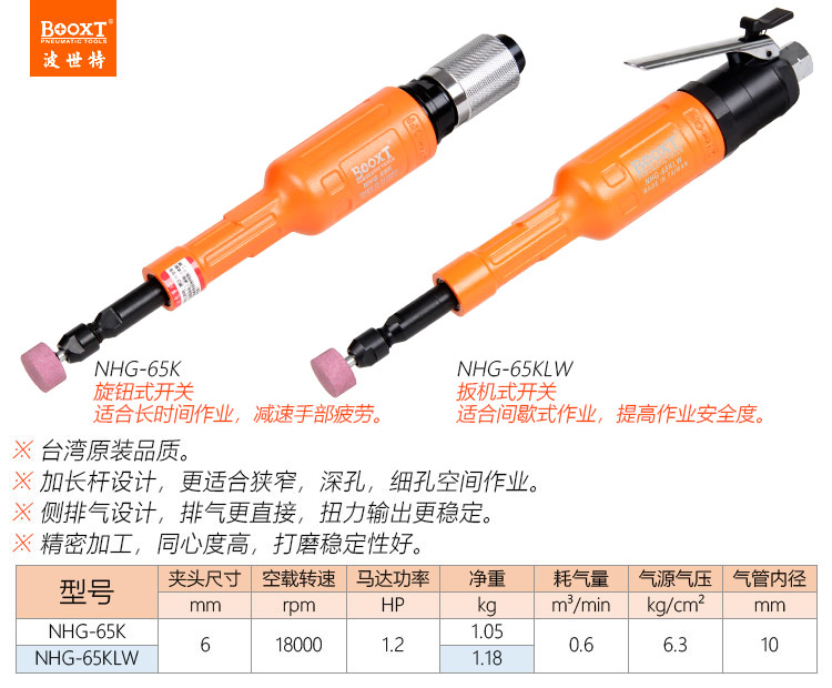 東莞市強(qiáng)勁五金工具有限公司提供臺(tái)灣BOOXT波世特品牌氣動(dòng)工具,加長(zhǎng)氣動(dòng)打磨機(jī)NHG-65KLW廠家直銷,首件享特價(jià)。咨詢熱線:4008301980