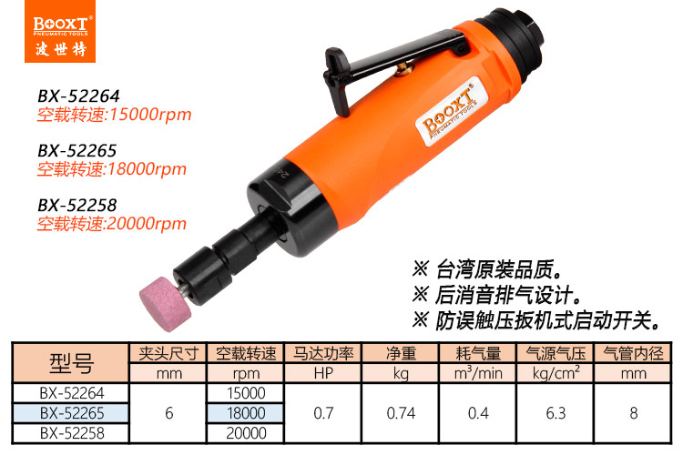 東莞市強(qiáng)勁五金工具有限公司提供臺(tái)灣BOOXT波世特品牌氣動(dòng)工具,15000轉(zhuǎn)風(fēng)磨機(jī)BX-52264廠家直銷,首件享特價(jià)。咨詢熱線:4008301980