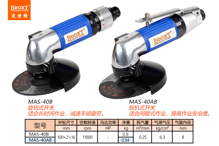 東莞市強(qiáng)勁五金工具有限公司提供臺(tái)灣BOOXT波世特品牌氣動(dòng)工具,輕型氣動(dòng)角磨機(jī)MAS-40B廠家直銷,首件享特價(jià)。咨詢熱線:4008301980