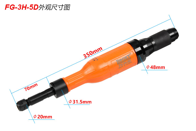 • 產(chǎn)品參數(shù): 夾頭能力:M3,6 (標(biāo)配M6) 空載轉(zhuǎn)速:14600rpm 馬達(dá)功率:0.7HP 全 長(zhǎng):350mm 加長(zhǎng)桿長(zhǎng):70mm 重 量 : 1.26kg 耗 氣 量:0.55m3/min 【工業(yè)型/旋鈕開關(guān)】