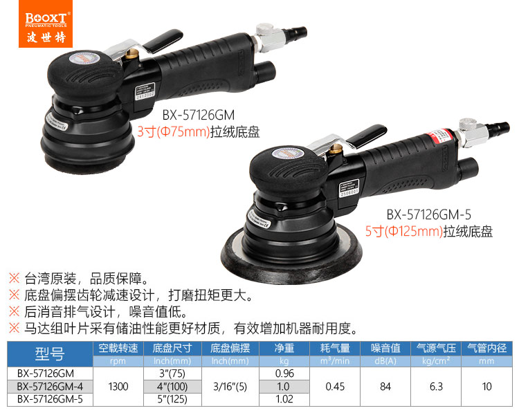 東莞強勁五金工具有限公司提供臺灣BOOXT波世特氣動工具,氣動慢速拋光機BX-57126GM-5廠家直銷,首件享特價。咨詢熱線:4008301980