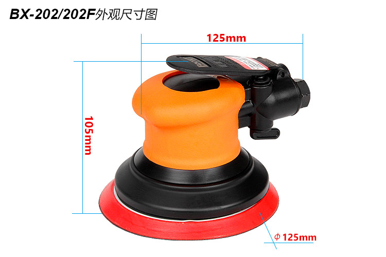 • 產(chǎn)品參數(shù): 底盤尺寸:125mm 【5寸】 空載轉(zhuǎn)速:11000rpm 偏擺直徑:2.5mm 重 量:0.74kg 耗 氣 量:0.57m3/min 【專業(yè)型/細(xì)磨】