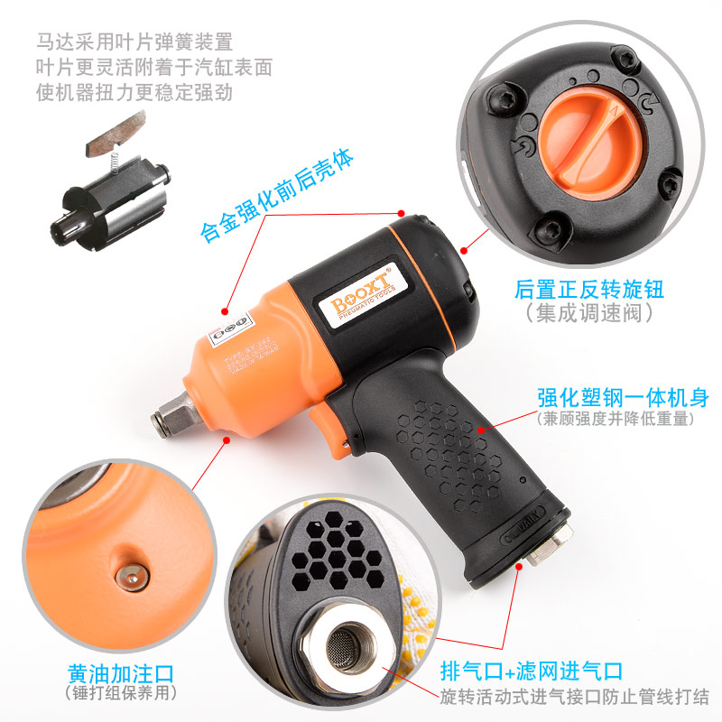 風(fēng)動(dòng)扳手特點(diǎn):(塑鋼外殼,強(qiáng)度更高不變形,提高耐用度)