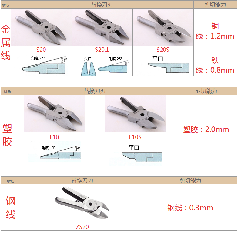 • 產(chǎn)品參數(shù): 能力: 1.2mm銅線/0.8mm鐵線;進(jìn)氣口: 8mm;刀刃角度: 25°; 凈重: 0.14kg(手提按扳控制式)
