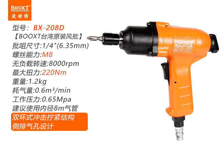 東莞市強(qiáng)勁五金工具有限公司提供臺灣BOOXT波世特品牌氣動工具,氣動螺絲刀BX-208D廠家直銷,首件享特價。咨詢熱線:4008301980